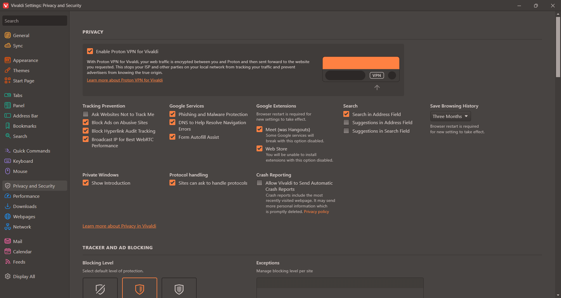 Vivaldi promises privacy and security, and it is not a mere promise. It comes with a built-in ad and tracker blocker. It also offers encrypted synchronization for passwords and bookmarks. It also comes with an integrated VPN, which is the Proton VPN. You can sign in with Vivaldi or your Proton account and use the VPN.